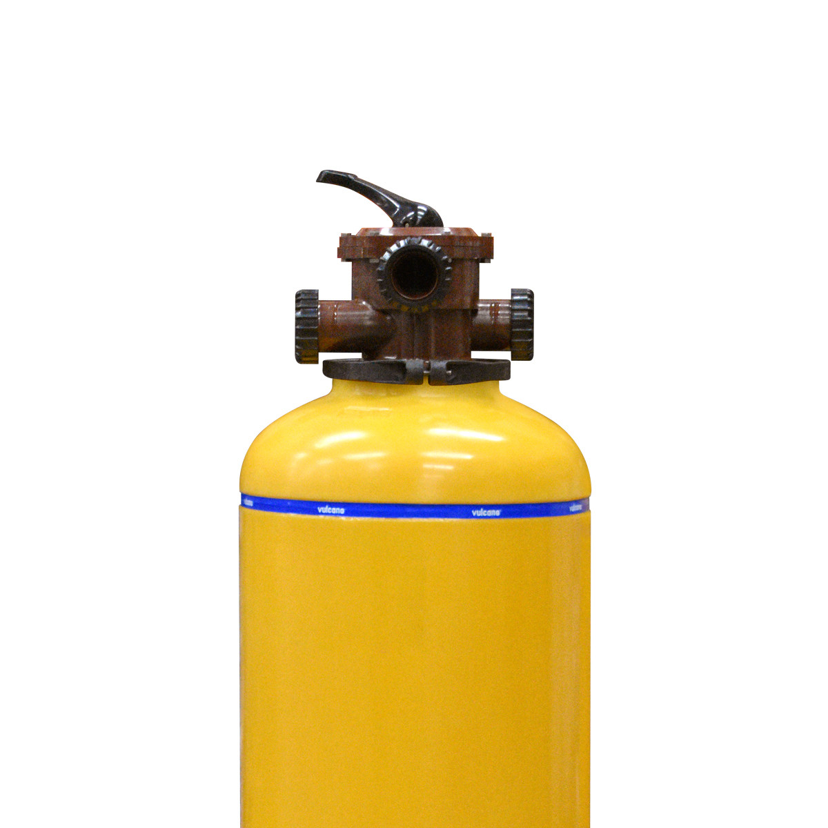 Filtro de Ø 430mm con multiválvula de 6 funciones, manual. El equipo puede utilizarse con carga filtrante multimedia, para eliminación de sedimentos o con carbón activado, para eliminar los problemas de mal olor y sabor relacionados con la presencia de cloro residual presente en el suministro de agua potable de red.