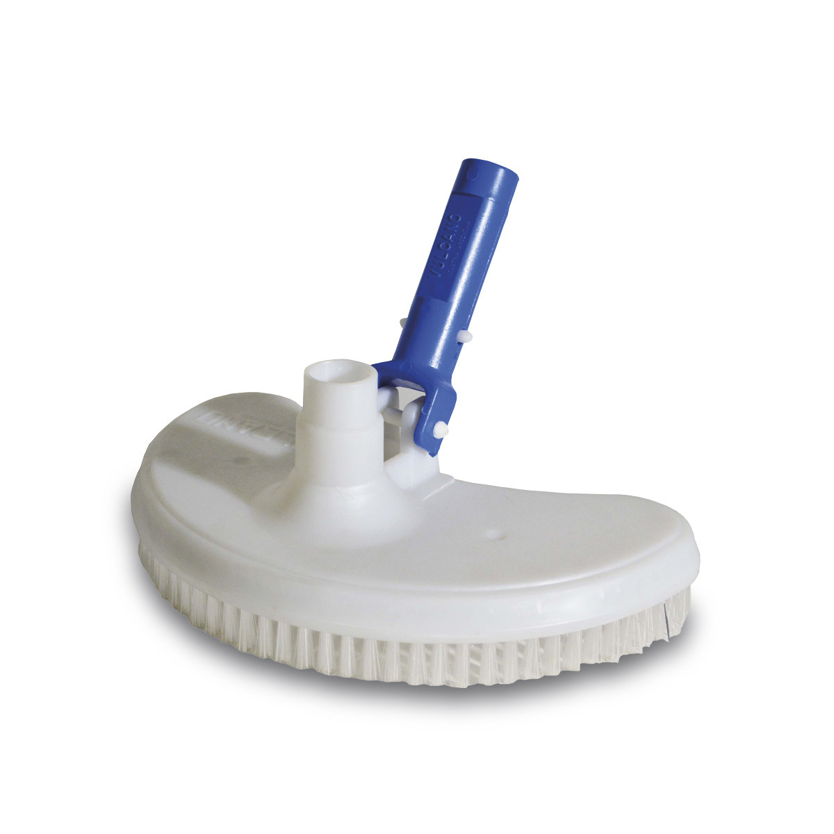 Contamos con una amplia gama de limpiafondos para mejorar la limpieza de su pileta. Este modelo, Medialuna Liviano, cuenta con cepillos de polipropileno fijos. Su diseño y peso lo transforman en la mejor opción para limpiar escaleras y formas irregulares. Económico, ideal para piletas chicas.