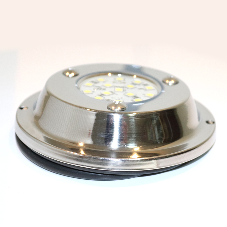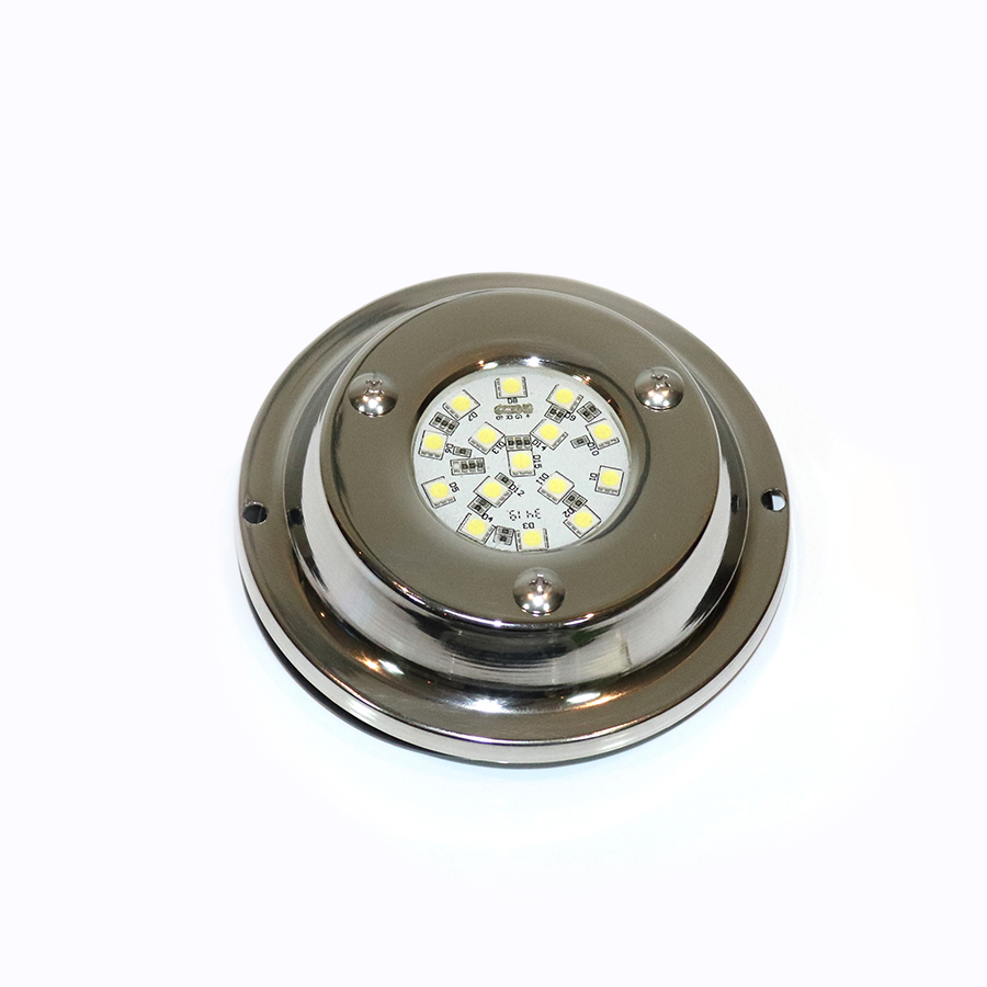 La luz presenta un fleje de sujeción y tornillos de acero inoxidable. Además la lampara está encapsulada en doble resina epoxi blanca y transparente, lo que evita filtraciones y condensaciones de agua. Debido a que no posee filamentos, son muy resistentes a golpes y movimientos. Es por ello que es adecuada para las piletas, ya que emite una luz unidireccional.